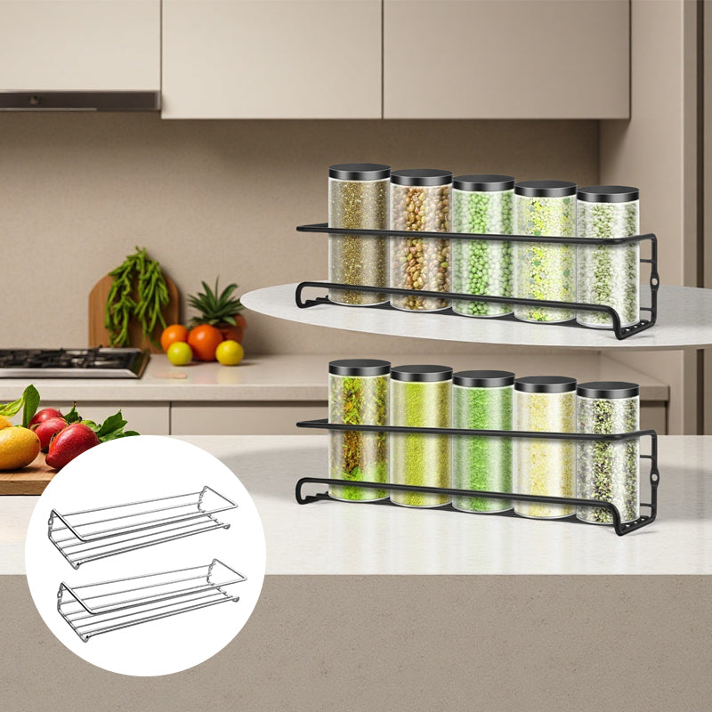 Carbon Steel Wall-Mounted Kitchen Spice Rack – Iron Cabinet Door Storage Shelf