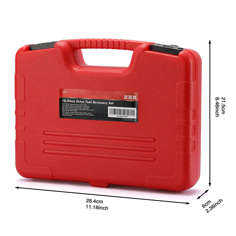 {"id":8436178616505,"title":"18-Piece CR-V Steel Socket Accessory Set","handle":"18-piece-cr-v-steel-socket-accessory-set","description":"\u003cp\u003e\u003cstrong\u003eUpgrade your toolkit with this 18-piece CR-V steel socket accessory set—durable, versatile, and perfect for tackling automotive repairs or home projects. A must-have for mechanics and DIY enthusiasts who want reliable performance and convenient organization.\u003c\/strong\u003e\u003c\/p\u003e\n\u003cp\u003e\u003cimg alt=\"\" src=\"https:\/\/cdn.shopify.com\/s\/files\/1\/0554\/6406\/7257\/files\/remove-photos-object-removed.jpg?v=1773656716\"\u003e\u003c\/p\u003e\n\u003ch4\u003e\n\u003cspan style=\"color: #ff8000;\"\u003e \u003cstrong\u003eFEATURES\u003c\/strong\u003e \u003c\/span\u003e \u003c\/h4\u003e\n\u003cul\u003e\n\u003cli\u003e\n\u003cp data-start=\"65\" data-end=\"287\"\u003e\u003cstrong data-start=\"65\" data-end=\"101\"\u003ePremium CR-V Steel Construction:\u003c\/strong\u003e Made from high-quality chrome-vanadium (CR-V) steel with a black phosphate finish, ensuring exceptional durability, corrosion resistance, and long-lasting performance under heavy use.\u003c\/p\u003e\n\u003c\/li\u003e\n\u003cli\u003e\n\u003cp data-start=\"417\" data-end=\"567\"\u003e\u003cstrong data-start=\"417\" data-end=\"460\"\u003eComplete 18-Piece Set with Exact Sizes:\u003c\/strong\u003e Includes extension bars, socket adapters, universal joints, and bit adapters for versatile applications:\u003c\/p\u003e\n\u003cul data-start=\"568\" data-end=\"858\"\u003e\n\u003cli data-section-id=\"crurnk\" data-start=\"568\" data-end=\"664\"\u003e\n\u003cp data-start=\"570\" data-end=\"664\"\u003e\u003cstrong data-start=\"570\" data-end=\"589\"\u003eExtension Bars:\u003c\/strong\u003e 1\/4\" – 75mm, 150mm; 3\/8\" – 75mm, 150mm, 250mm; 1\/2\" – 75mm, 150mm, 250mm\u003c\/p\u003e\n\u003c\/li\u003e\n\u003cli data-section-id=\"85zzmn\" data-start=\"665\" data-end=\"748\"\u003e\n\u003cp data-start=\"667\" data-end=\"748\"\u003e\u003cstrong data-start=\"667\" data-end=\"687\"\u003eSocket Adapters:\u003c\/strong\u003e 1\/4\"F → 3\/8\"M, 3\/8\"F → 1\/4\"M, 3\/8\"F → 1\/2\"M, 1\/2\"F → 3\/8\"M\u003c\/p\u003e\n\u003c\/li\u003e\n\u003cli data-section-id=\"19vbwng\" data-start=\"749\" data-end=\"797\"\u003e\n\u003cp data-start=\"751\" data-end=\"797\"\u003e\u003cstrong data-start=\"751\" data-end=\"772\"\u003eUniversal Joints:\u003c\/strong\u003e 1\/4\"Dr, 3\/8\"Dr, 1\/2\"Dr\u003c\/p\u003e\n\u003c\/li\u003e\n\u003cli data-section-id=\"1ay2ywz\" data-start=\"798\" data-end=\"858\"\u003e\n\u003cp data-start=\"800\" data-end=\"858\"\u003e\u003cstrong data-start=\"800\" data-end=\"817\"\u003eBit Adapters:\u003c\/strong\u003e 1\/4\" → 6.3mm, 3\/8\" → 6.3mm, 1\/2\" → 8mm\u003c\/p\u003e\n\u003c\/li\u003e\n\u003c\/ul\u003e\n\u003c\/li\u003e\n\u003cli\u003e\n\u003cp data-start=\"582\" data-end=\"806\"\u003e\u003cstrong data-start=\"582\" data-end=\"604\"\u003eForged \u0026amp; Hardened:\u003c\/strong\u003e Each piece is forged from impact-resistant CR-V steel with high hardness, wear resistance, and excellent torque capability, designed to withstand professional-level tasks without bending or breaking.\u003c\/p\u003e\n\u003c\/li\u003e\n\u003cli\u003e\n\u003cp data-start=\"808\" data-end=\"997\"\u003e\u003cstrong data-start=\"808\" data-end=\"829\"\u003ePrecision Design:\u003c\/strong\u003e One-piece molded extension bars and adapters provide reliable fit and reduced wobble. The socket adapters and couplers support multiple drive sizes for flexible use.\u003c\/p\u003e\n\u003c\/li\u003e\n\u003cli\u003e\n\u003cp data-start=\"999\" data-end=\"1206\"\u003e\u003cstrong data-start=\"999\" data-end=\"1020\"\u003eWide Application:\u003c\/strong\u003e Perfect for automotive repairs, mechanical work, or any project requiring socket extensions, adapters, or universal joints. Ideal for professional mechanics and DIY enthusiasts alike.\u003c\/p\u003e\n\u003c\/li\u003e\n\u003cli\u003e\n\u003cp data-start=\"1208\" data-end=\"1340\"\u003e\u003cstrong data-start=\"1208\" data-end=\"1230\"\u003eOrganized Storage:\u003c\/strong\u003e Comes in a durable blow-molded carrying case for convenient transport, quick access, and organized storage.\u003c\/p\u003e\n\u003c\/li\u003e\n\u003c\/ul\u003e\n\u003cp\u003e \u003c\/p\u003e\n\u003ch4\u003e\u003cspan style=\"color: #ff8000;\"\u003e \u003cstrong\u003eSPECIFICATIONS\u003c\/strong\u003e \u003c\/span\u003e\u003c\/h4\u003e\n\u003cul\u003e\n\u003cli\u003e\n\u003cstrong\u003eMaterial: \u003c\/strong\u003eChrome-Vanadium (CR-V) Steel\u003cstrong\u003e\u003cbr data-start=\"1402\" data-end=\"1405\"\u003e\u003c\/strong\u003e\n\u003c\/li\u003e\n\u003cli\u003e\n\u003cstrong\u003eFinish: \u003c\/strong\u003eBlack Phosphate\u003cstrong\u003e\u003cbr data-start=\"1428\" data-end=\"1431\"\u003e\u003c\/strong\u003e\n\u003c\/li\u003e\n\u003cli\u003e\n\u003cstrong\u003eSet Size: \u003c\/strong\u003e18 Pieces\u003cstrong\u003e\u003cbr data-start=\"1450\" data-end=\"1453\"\u003e\u003c\/strong\u003e\n\u003c\/li\u003e\n\u003cli\u003e\n\u003cstrong\u003eComponents: \u003c\/strong\u003eExtension Bars, Socket Adapters, Universal Joints, Impact Couplers\u003c\/li\u003e\n\u003cli\u003e\n\u003cstrong\u003eSize: \u003c\/strong\u003e\u003cstrong\u003e\u003c\/strong\u003e\n\u003c\/li\u003e\n\u003c\/ul\u003e\n\u003cul\u003e\n\u003cli style=\"list-style-type: none;\"\u003e\n\u003cul data-end=\"858\" data-start=\"568\"\u003e\n\u003cli data-end=\"664\" data-start=\"568\" data-section-id=\"crurnk\"\u003e\n\u003cp data-end=\"664\" data-start=\"570\"\u003e\u003cstrong data-end=\"589\" data-start=\"570\"\u003eExtension Bars:\u003c\/strong\u003e 1\/4\" – 75mm, 150mm; 3\/8\" – 75mm, 150mm, 250mm; 1\/2\" – 75mm, 150mm, 250mm\u003c\/p\u003e\n\u003c\/li\u003e\n\u003cli data-end=\"748\" data-start=\"665\" data-section-id=\"85zzmn\"\u003e\n\u003cp data-end=\"748\" data-start=\"667\"\u003e\u003cstrong data-end=\"687\" data-start=\"667\"\u003eSocket Adapters:\u003c\